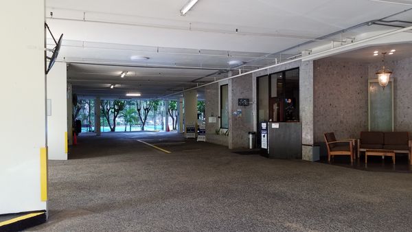 Drive slowly past the lobby and you can park temporary to the right of the handicap stalls in front of
