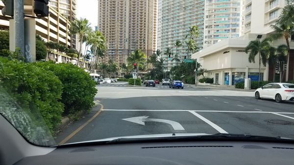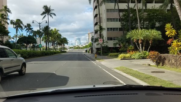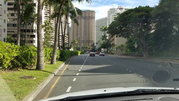 2 tall condo towers, this is the main entrance into Waikiki. Drive
